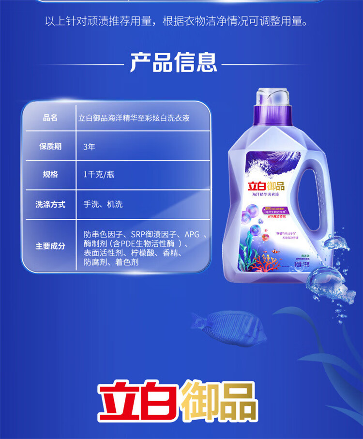 立白御品海洋精华至彩炫白洗衣液(蓝瓶)1千克