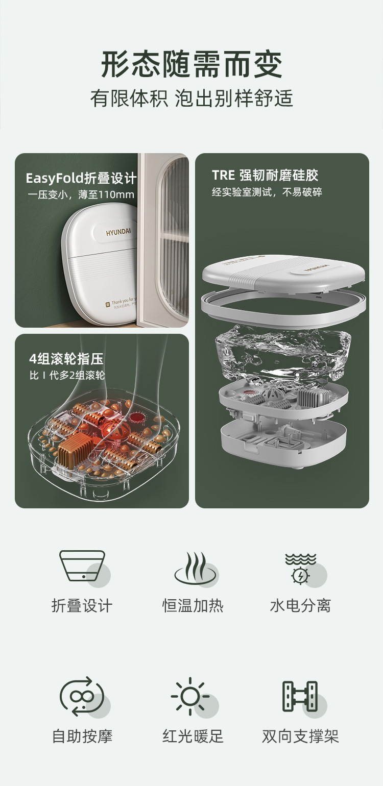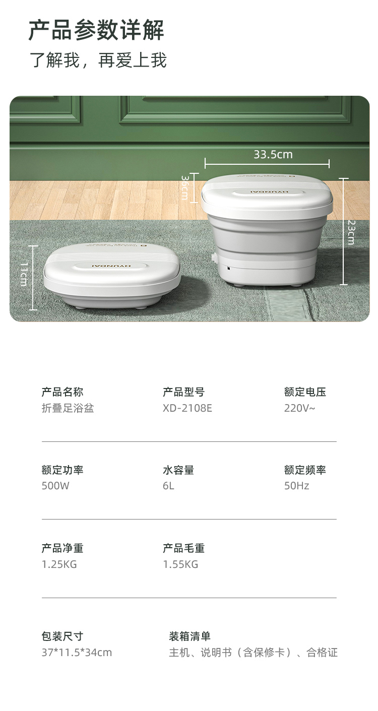 现代HYUNDAI 折叠足浴盆 XD-2108E-B (备注:偏远地区不发货:新疆、西藏、青海、宁夏、甘肃、内蒙古、海南)